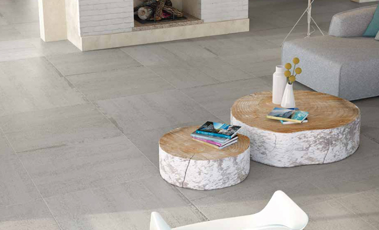 Polis are vitrified stone and concrete effect floor tiles, with a variety of finishes and shades. They work well inside and out, and have excellent non-slip qualities. Available in slabs of porcelain stoneware, they give a beautifully clean-lined look.